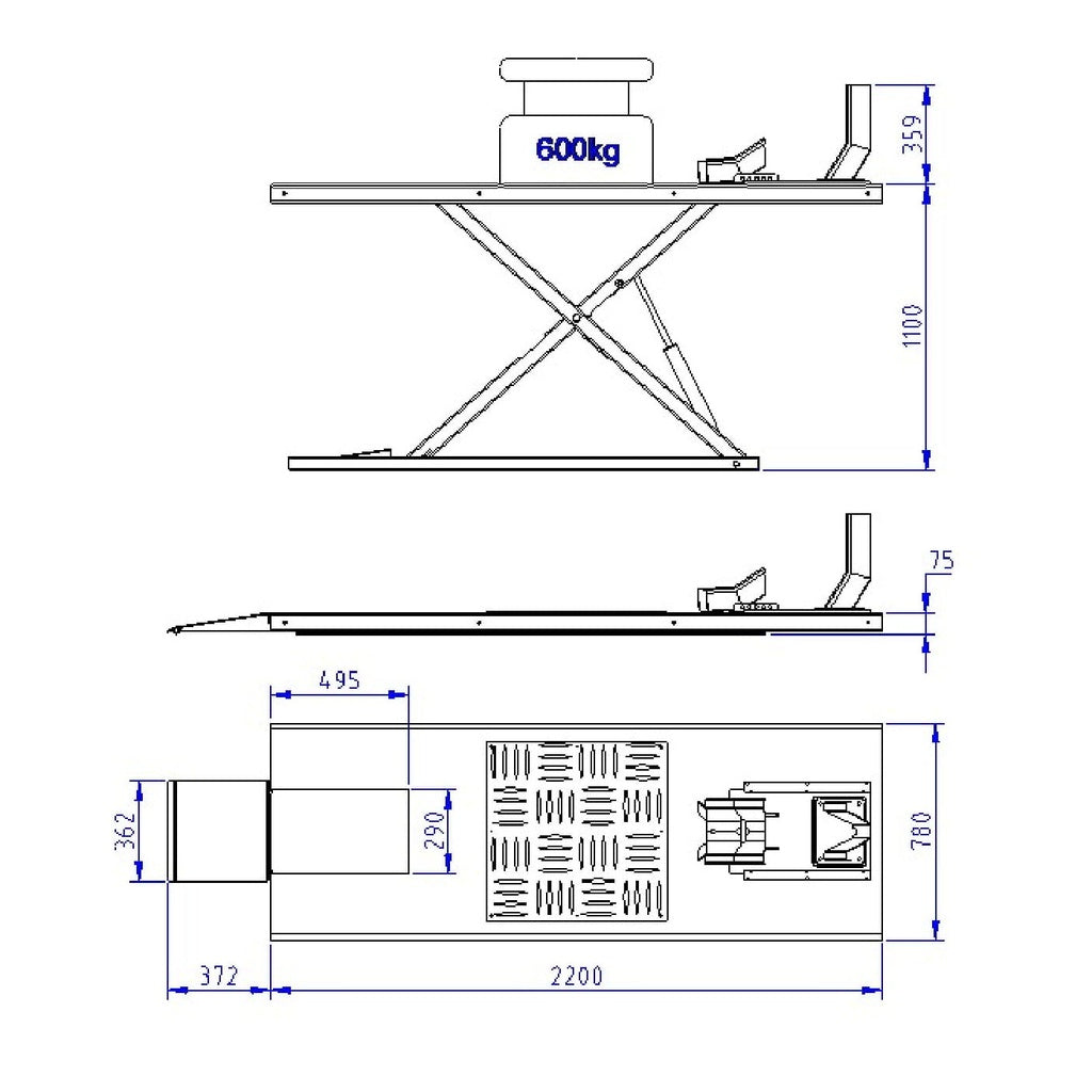 Motorheftafel premium 600kg elektrisch